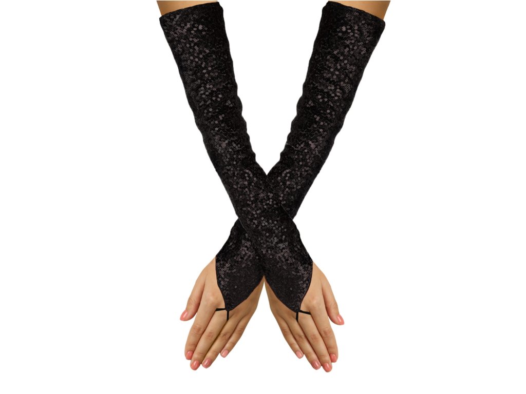 Tyto dlouhé rukavice s flitry jsou nepřehlédnutelným doplňkem pro každou slavnostní příležitost. Jemně třpytivý povrch krásně odráží světlo a dodává outfitu elegantní i extravagantní nádech.