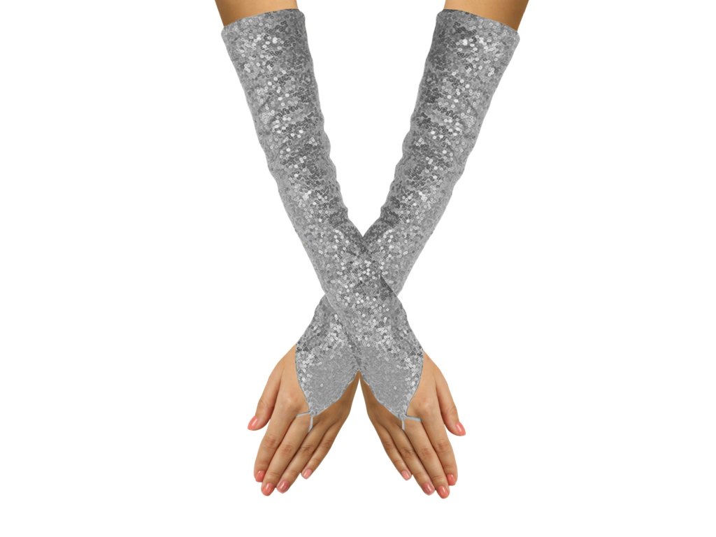 Tyto dlouhé rukavice s flitry jsou nepřehlédnutelným doplňkem pro každou slavnostní příležitost. Jemně třpytivý povrch krásně odráží světlo a dodává outfitu elegantní i extravagantní nádech.