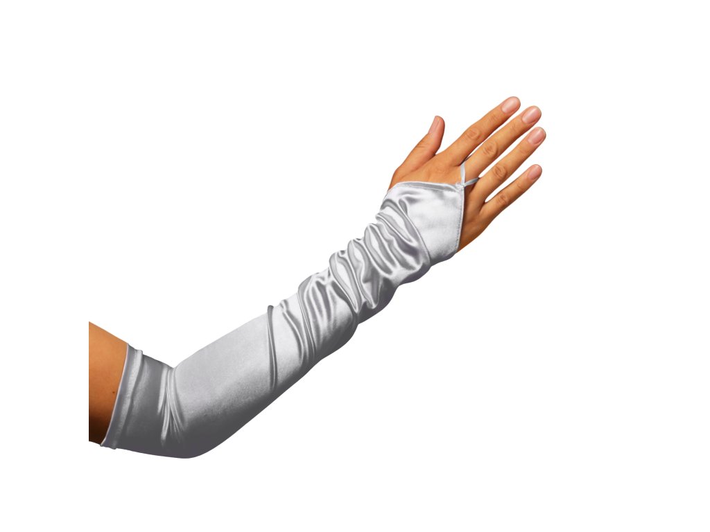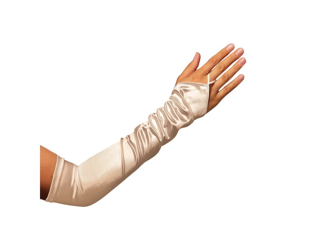 Dlouhé saténové rukavice s jemným leskem a elegantním detailem – špička zakončená ouškem pro zachycení na prostředníček. Tento rafinovaný prvek zajišťuje perfektní držení a dodává rukavicím originální šmrnc. Díky délce 48 cm působí luxusně a opticky prodlužují paži. Ideální ke společenským šatům, na ples, svatbu i glamour večírek.
