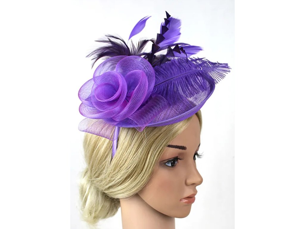 Půvabná růže přizdobená peří a ptačími brky. Fascinátor se připevňuje na vlasy pomocí sponky, která je umístěna ve spodní části a je součástí balení. Vhodný doplněk na různá společenská akce a slavnostní události. Možnost vybírat z pestré palety barev.