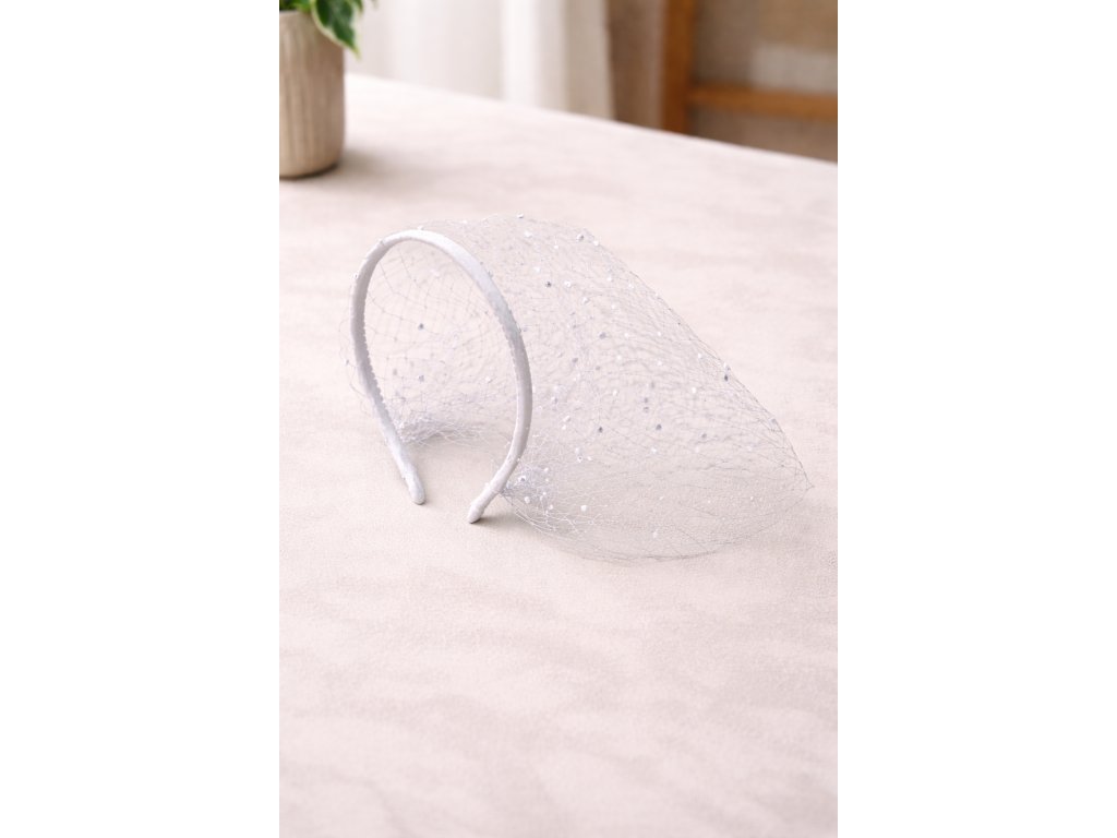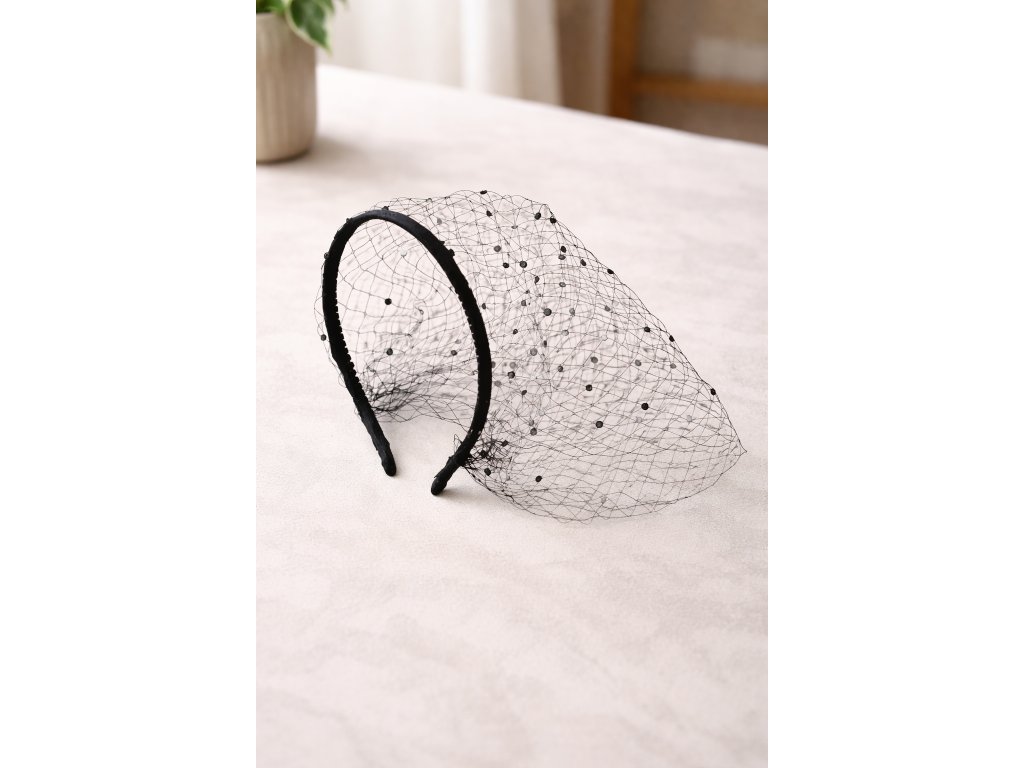 Stylový dámský fascinátor se závojem je dokonalým doplňkem pro slavnostní a společenské příležitosti. Jemná síťka je zdobená drobnými perličkami, které dodávají modelu luxusní a velmi ženský vzhled.