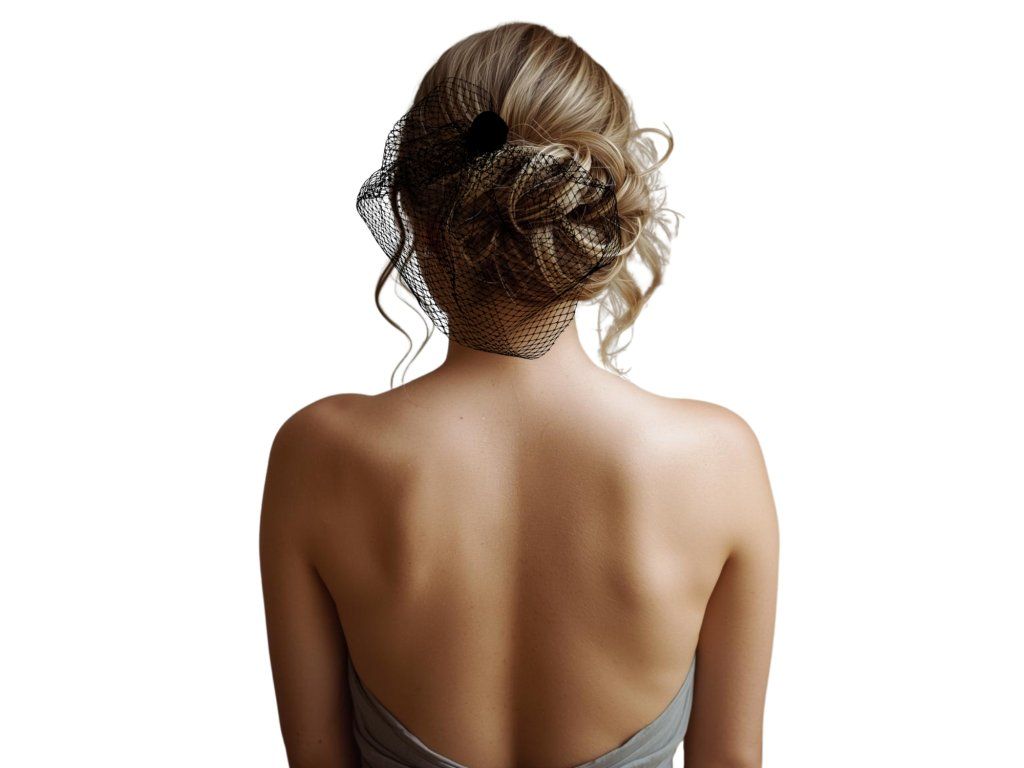 Fascinátor je upevněn na pohodlné čelence, která dobře drží a zajišťuje komfort po celý den i večer. Závoj lehce splývá přes část obličeje a vytváří elegantní, lehce tajemný efekt.