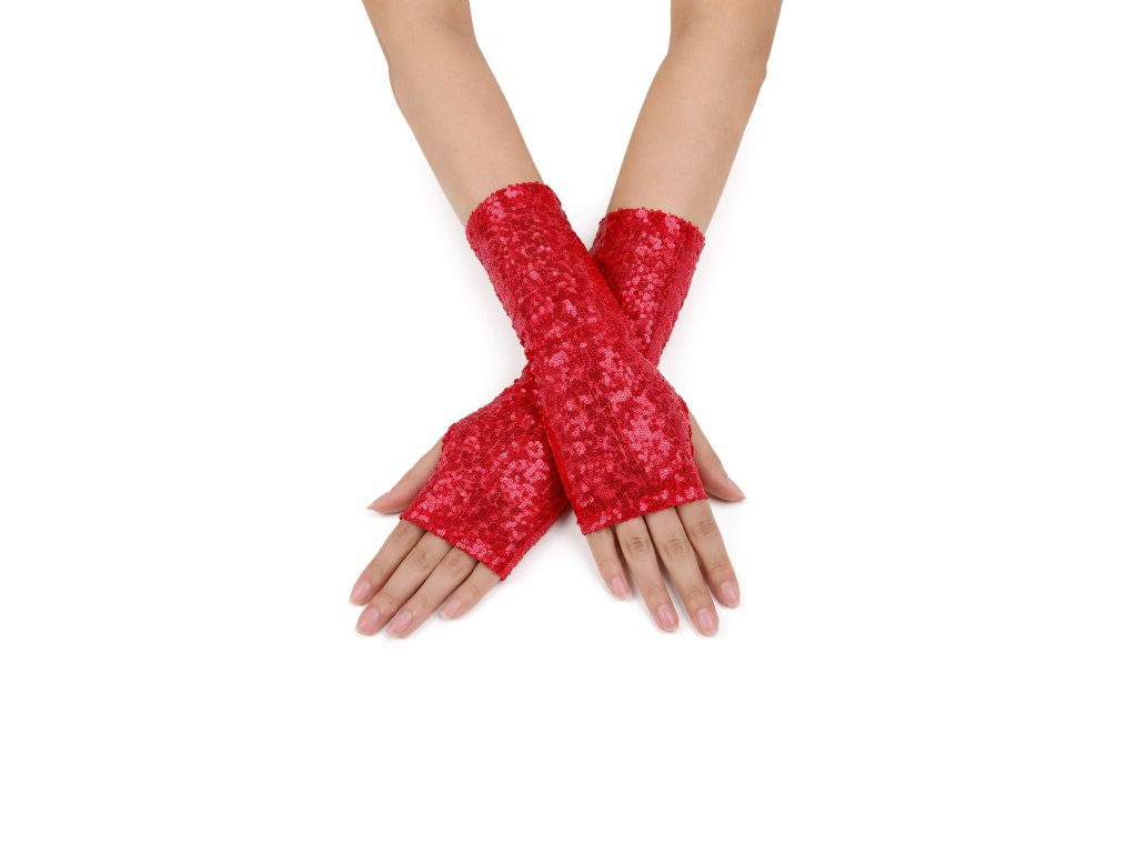 Dámské rukavice bez prstů jsou nepřehlédnutelným doplňkem pro slavnostní i společenské příležitosti. Povrch je zdobený hustě našitými flitry, které se nádherně třpytí při každém pohybu a dodávají outfitu výrazný glamour efekt.